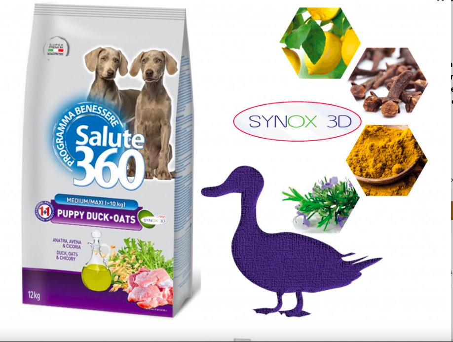 SALUTE 360 je superprémiové monoproteinové krmivo s kachním masem pro štěňata s citlivým zažíváním - střední a velká plemena.